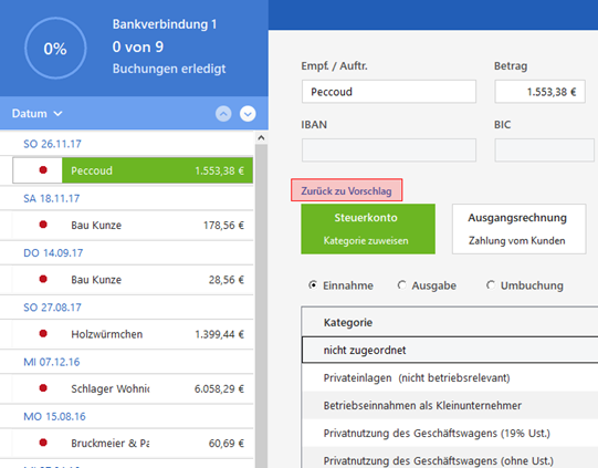 Falls Sie den zuvor verworfenen Vorschlag von WISO Mein Büro 365 wieder erhalten möchten, klicken Sie auf "Zurück zu Vorschlag":