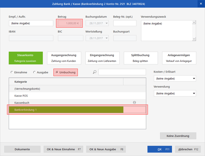 5. Umbuchung zwischen zwei Bankverbindungen
