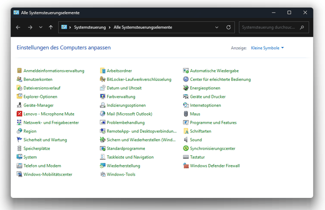 Sofern du den Punkt "Standardprogramme" nicht direkt siehst, klicke oben rechts bei "Anzeige" auf "Kleine Symbole" und wählen dann "Standardprogramm".
