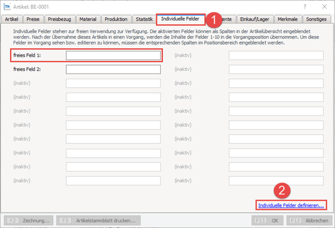 Wie hinterlege ich individuelle Felder für Artikel in Vorgängen?