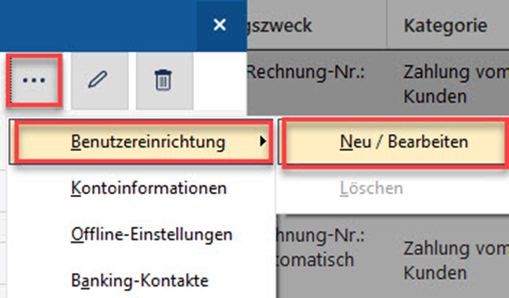 Bestätigen Sie die Schaltfläche "Benutzereinrichtung…" und wählen "Neu / Bearbeiten".