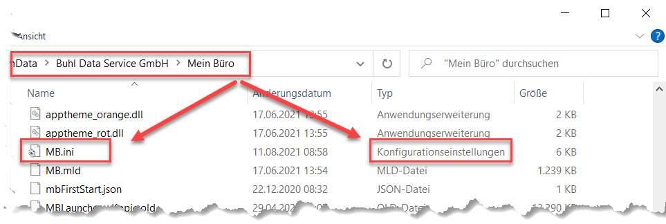 Suchen Sie in dem genannten Verzeichnis die Datei "MB.ini" und öffnen Sie diese mit einem beliebigen Texteditor. Werden Ihnen keine Dateiendungen angezeigt, trägt die Datei nur die Bezeichnung "MB" und weist als "Typ" die Eintragung "Konfigurationseinstellungen" aus.