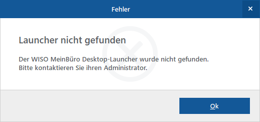 Erhalten Sie die Meldung: "Launcher nicht gefunden - Der WISO MeinBüro Desktop-Launcher wurde nicht gefunden. Bitte kontaktieren Sie Ihren Administrator" beim Start der Software können Sie dies über eine kleine Anpassung korrigieren.
