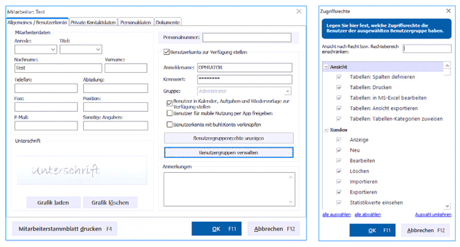 Über die Mitarbeiter-Stammdaten kannst du individuelle Rollen oder einzelne Benutzerrechte einstellen und verwalten. So legst du für jeden Mitarbeiter detailliert fest, welche Daten er einsehen und welche Daten er bearbeiten darf. Mehr dazu erfährst du unter diesem Beitrag: Benutzer- und Rechteverwaltung