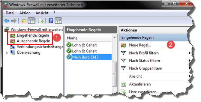 Kann die Datei nicht ausgeführt werden, ist die manuelle Eingabe der Regeln erforderlich. Die erforderlichen Einstellungen erreichen Sie über die Windows-Suche unter dem Suchbegriff "Systemsteuerung". "Systemsteuerung > System und Sicherheit > Windows Defender Firewall > Erweiterte Einstellungen". Klicken Sie auf "Eingehende Regeln /Ausgehende Regeln > Neue Regel".