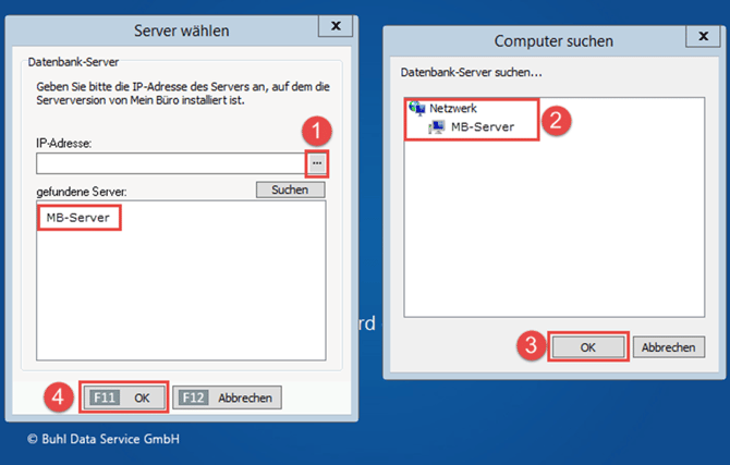 Sofern Sie die Meldung "Datenbank-Dienst kann nicht gefunden werden / Keine Verbindung zum Server" erhalten, folgen Sie bitte dieser Anleitung.