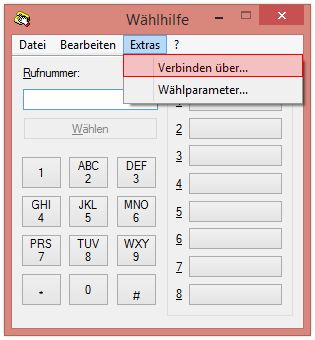 Telefonanlagen. Suchen Sie unter Windows nach der dialer.exe, um die Windows-Wählhilfe zu öffnen: