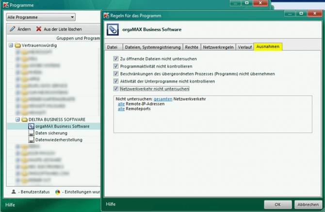 Wenden Sie sich bei Fragen zur Freigabe von Programmen in Ihrer Internet-Security direkt an den Hersteller.