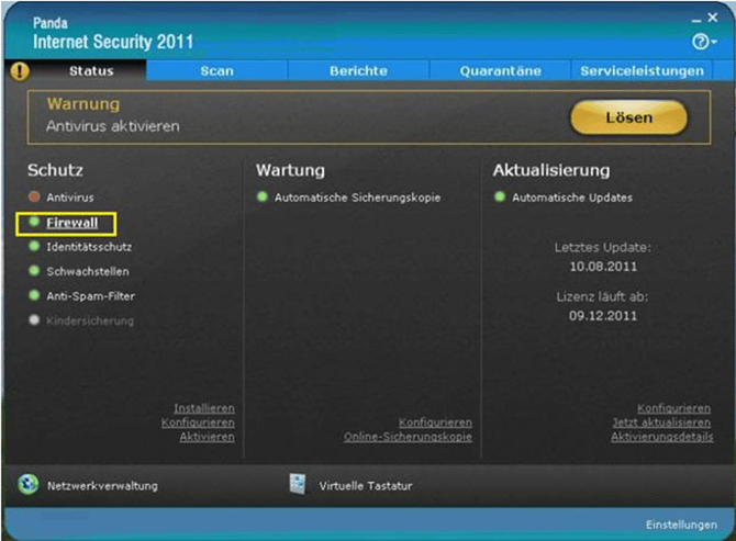 Dies zeigt sich bei den meisten Internet-Securities wie Kaspersky, Panda, F-Secure, Avast oder ESET. In diesem Fall sollten folgende Maßnahmen getroffen werden:
