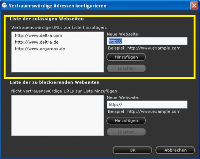 Je nach Version, kann diese Einstellung unterschiedlich ausfallen. Entweder unter "Web-Anti-Virus -> Einstellungen -> Vertrauenswürdige Seiten". Tragen Sie hier die Seiten "buhl.de" und "deltra.de" ein.