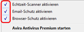Klicken Sie dazu mit der rechten Maustaste unten rechts auf das Avira-Symbol: