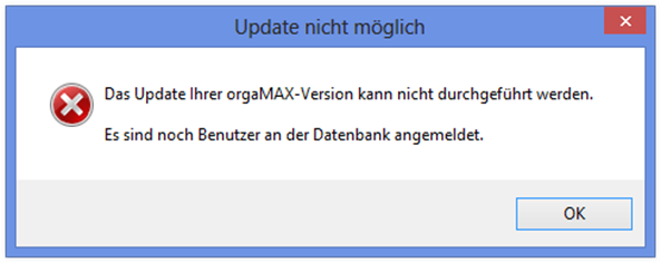 7. Meldung: Update nicht möglich