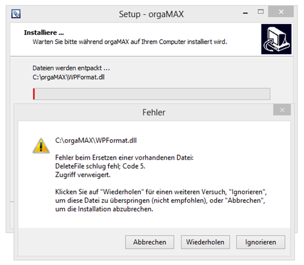 8. Meldung: Code 5 Fehler beim Ersetzen einer vorhandenen Datei