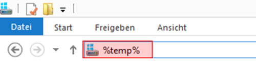 Hierzu gibt es zwei Möglichkeiten. Zuallererst sollte bereits ein Neustart des PCs weiterhelfen. Besteht der Sachverhalt weiterhin, begeben Sie sich in den Windows-Explorer (nicht den Internet-Explorer) und tragen dort als Adresszeile %temp% gefolgt von der Entertaste ein: