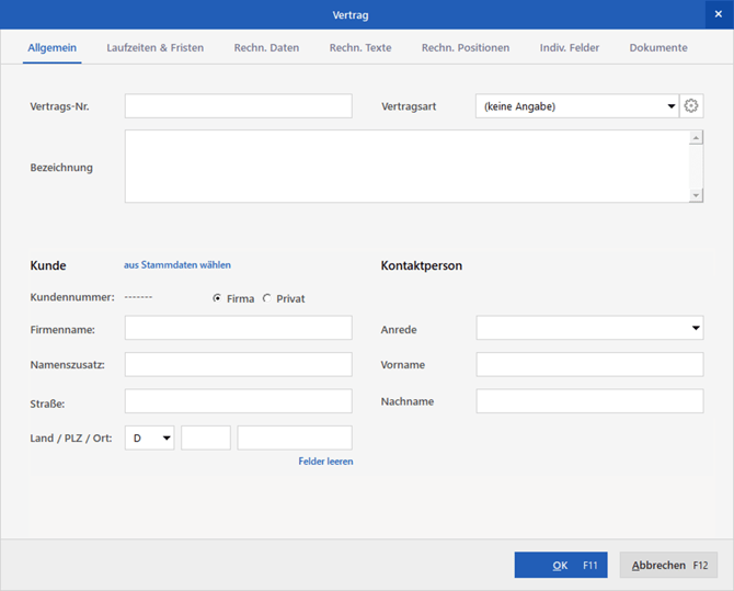Hier als Beispiel die allgemeinen Vertragsdaten: