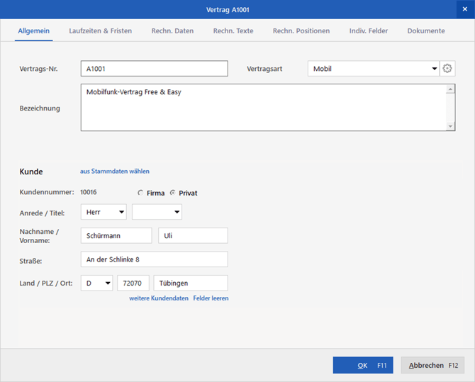 Hier ein Beispiel für die Rechnungs-Daten des Vertrags: