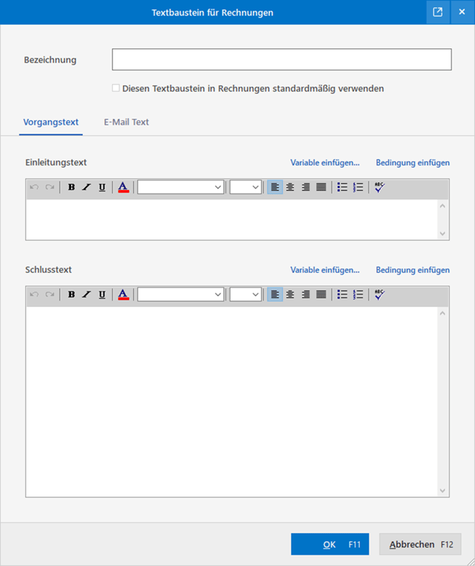 Sie befinden sich jetzt im Editor für die Textbausteine: