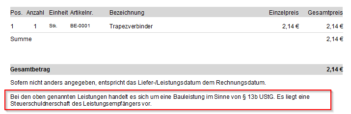 Handelt es sich bei Ihrem Kunden nicht um einen Auslandskunden, aber er erhält dennoch eine Netto-Rechnung, beispielsweise aufgrund von Bauleistungen nach § 13b, so gehen Sie bitte wie folgt vor.