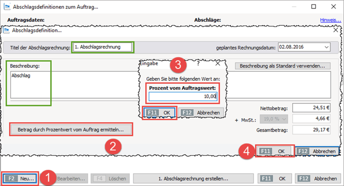 Wie erstelle ich Teilrechnungen, Abschlagsrechnungen und Schlussrechnungen?
