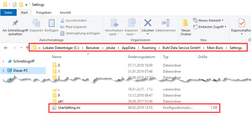 - Wählen Sie dann bitte den Pfad "Buhl Data Service GmbH\Mein Büro\Settings" aus.